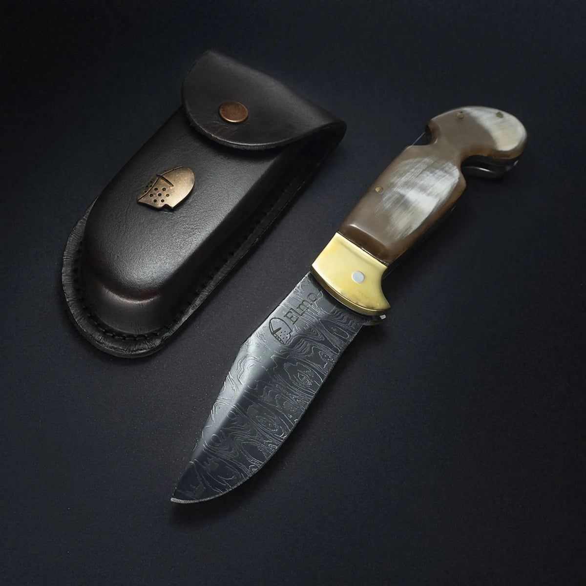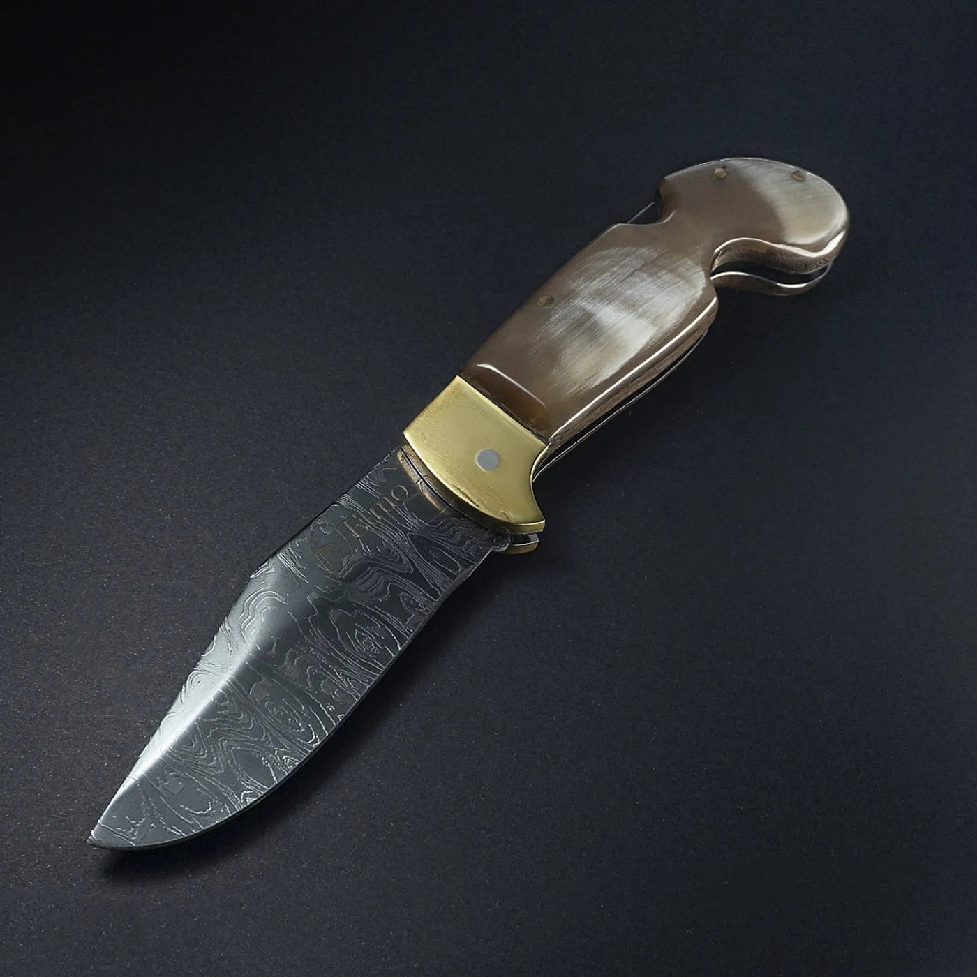 Sorocaba Damascus Pocket Knife with Cow Horn Handle
